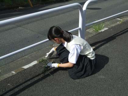 朝早くからたくさんの生徒が集まり、学校周辺を掃除しました。