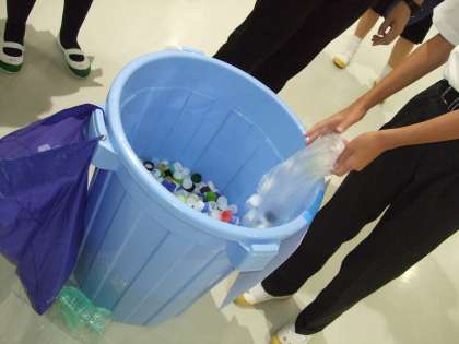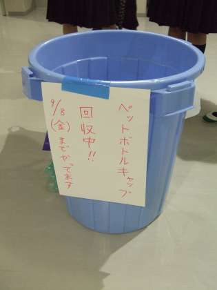 生徒会主催のペットボトルキャップ回収が始まりました。
