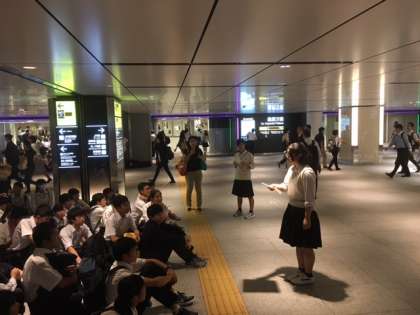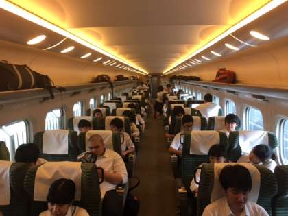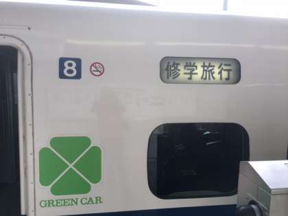 いよいよ修学旅行に出発します。天候は曇り、無事に集合しました。世田谷中はグリーン車が割り当てられ、ひと味違った電車の旅が味わえます。