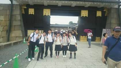 二条城に見学した班と会うことができました。 現在雨が降っています。