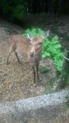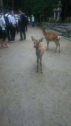 奈良公園周辺には、鹿がたくさんいて、追いかけられた生徒もいました。