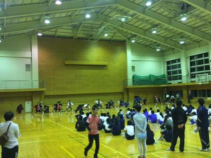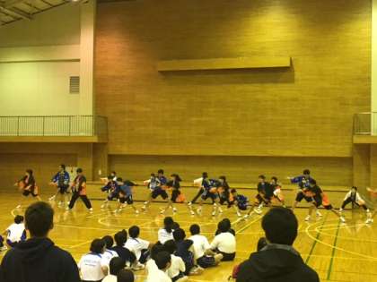 夜は学園で学級交流会を行いました。双葉学級は学級紹介としてソーラン節を披露しました。他の学級の生徒も一緒に声を出してくれました。