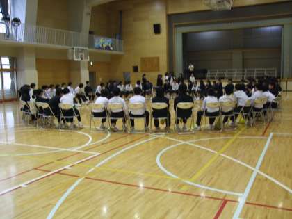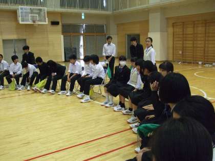 生徒会役員会では全校生徒で楽しめるよう、昼休みにこの日に毎年レクを企画して行っています。今年はみんなで「なんでもバスケット」をしました。