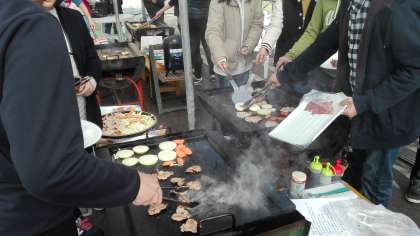 富士ミルクランドでバーベキュー。先程、養鱒場で釣った魚もここで食べます。