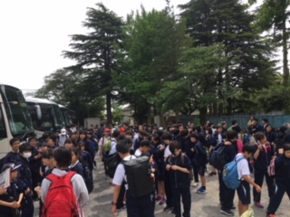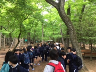 公園に到着しました。みんな元気です。これからフィールドアスレチックのスタートです。