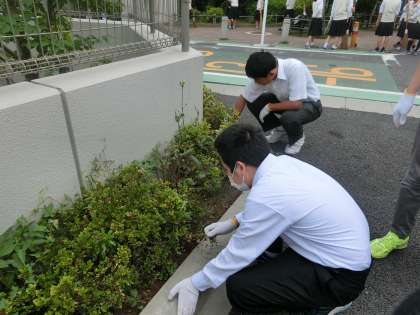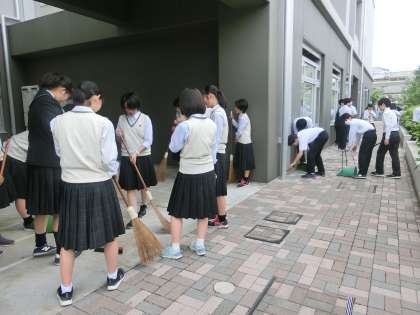 多くの生徒が参加し、学校周辺を掃除しました。