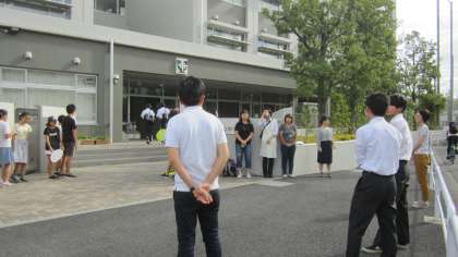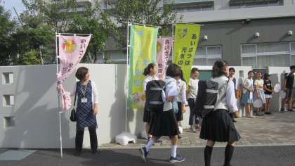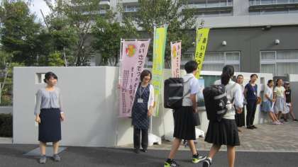 今日から世田谷中学校の代表生徒も、小学校の校門へ行きあいさつをしています!
