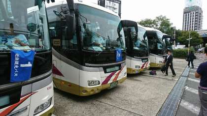 新大阪からバスで法隆寺にむかいます。天気は曇り、雨がやんだ直後のようです。