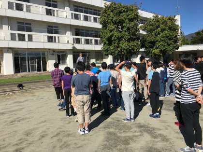 台風の影響により一部スケジュール変更がありましたが、レーダードーム館、ふじさんミュージアムを見学したあと、14時30分ごろ学園に到着し、開園式を行いました。学園での生活が楽しみですね。晴れていて、とってもきれいな富士山が見えました!