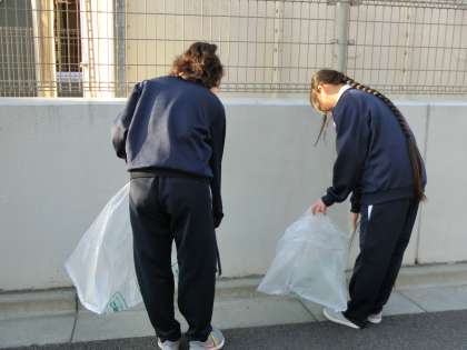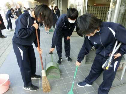 寒い中ですが、多くの生徒が参加し、学校周辺の掃除をしました。
