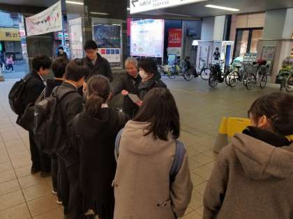 最後は梅ヶ丘駅でのチェックになります。全班、無事にチェックを受けることができました。一日お疲れ様でした。成功したこと、失敗したことなど色々あると思いますが、今日の経験を来年度の修学旅行に活かしていきましょう。