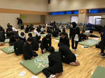 2月9日、双葉学級は1年A組〜D組の生徒と一緒に校内百人一首大会に参加しました。札をたくさん取れた人、そうでなかった人いたと思いますが、いい交流になりましたね。