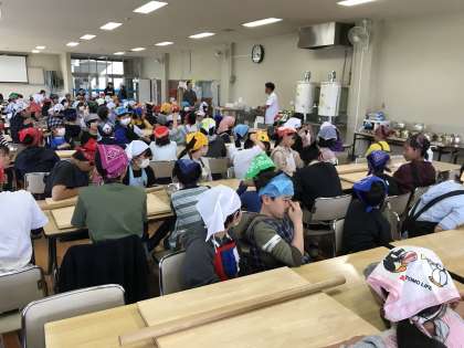 林間学園の職員の方の説明を聞き、