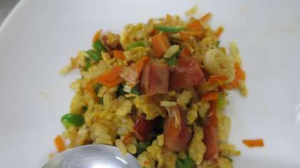 たまごチャーハンをつくりました。最後にお醤油で味付けしました。