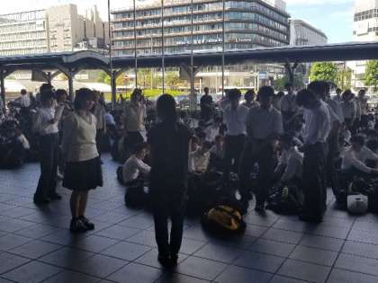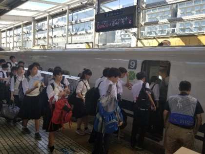 14:40現在。予定通り、京都を出発しました。お迎えにいらっしゃる保護者の方は、お知らせした通り品川駅には16:49到着、17:00に解散となります。その後、生徒達は山手線乗り口まで移動し、それぞれで帰宅となります。