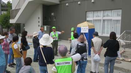 9月29日、世田谷中学校で避難所運営訓練が行われました。避難所運営本部の方に防災倉庫、体育館での避難生活、マンホールトイレについて教えていただきました。本校からも11名の生徒がボランティアとして参加し、マンホールトイレの組み立ての実演を行いました。