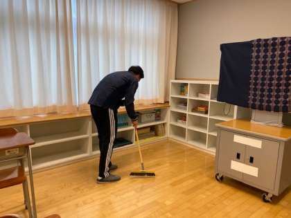 いつでも授業が始められるよう、教室掃除は毎日欠かさず行っています。