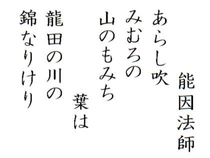 嵐吹く三室(みむろ)の山のもじぢ葉(は)は