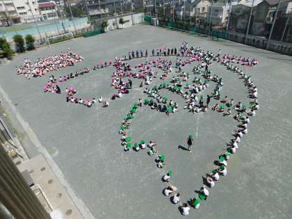 全校生徒で、ある形をつくっています