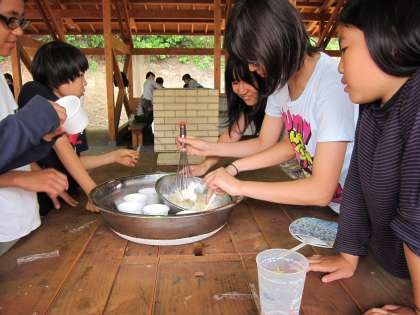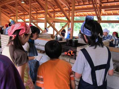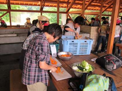 曇り空でしたが、各班、みんなで協力し合い、おいしい昼食をつくることができました。