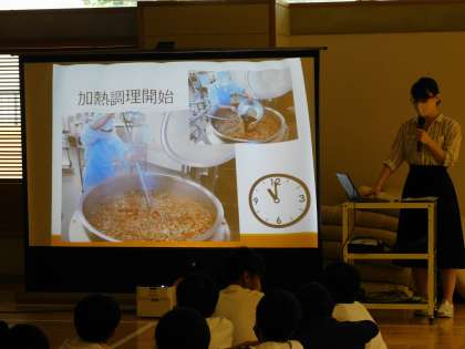 みんなが食べている給食がどのように作られているかを学ぶ、 『給食ガイダンス』を行いました。本校の管理栄養士の先生から、あらためて1年生に給食がどのように作られているか説明してもらいました。 以下は生徒の感想です。