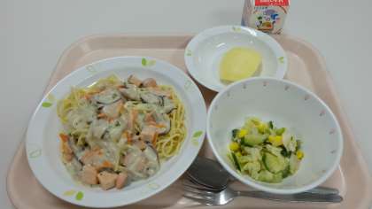 10月13日(火)の給食 公開日 2020/10/13 更新日 2020/10/13 給食 《今日の献立》 ・鮭ときのこのクリームソースパスタ ・チーズサラダ ・りんご(つがる) ・牛乳 いいね(0) 給食