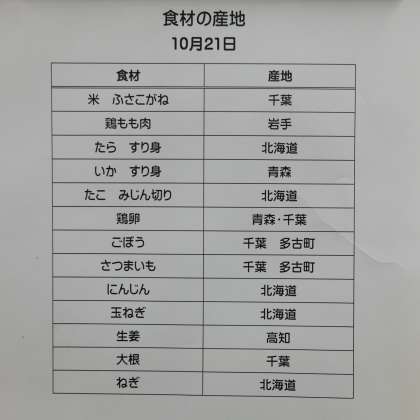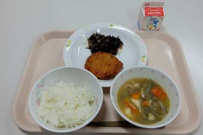 《今日の献立》 ・ごはん ・手作りさつま揚げ ・ひじきの煮物 ・さつま汁 ・牛乳