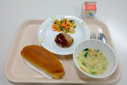11月11日(水)の給食 公開日 2020/11/11 更新日 2020/11/11 給食 《今日の献立》 ・ミルクパン ・アップルチーズハンバーグ ・コロコロ野菜サラダ ・洋風たまごスープ ・牛乳 いいね(0) 給食