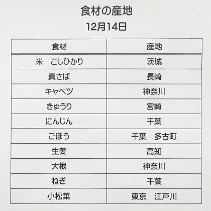 12月14日(月)の給食 公開日 2020/12/14 更新日 2020/12/14 給食 《今日の献立》 ・ごはん (こしひかり) ・さばのごまだれかけ ・野菜の甘酢生姜あえ ・けんちん汁 ・牛乳 いいね(0) 給食