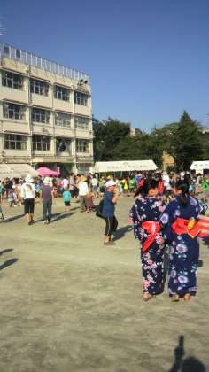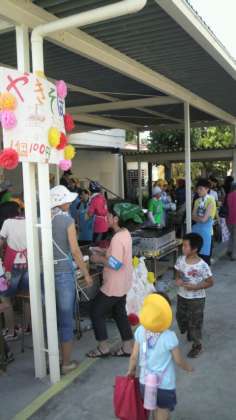 7月16日 今日は城山小学校でこどもまつりが開かれています。とても暑いのですが、みんなとても元気で楽しそうです。世田谷中の生徒もボランティアとして参加しています。