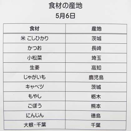 5月6日(木)の給食 公開日 2021/05/06 更新日 2021/05/06 給食 《今日の献立》 ・ごはん 五分づき米入り ・鰹と揚げじゃがのケチャップみそ ・野菜ののりあえ ・けんちん汁 ・牛乳 いいね(0) 給食