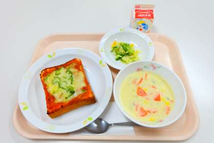 《今日の献立》 ・ツナピザトースト ・コールスロー ・コーンクリームスープ ・牛乳