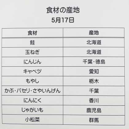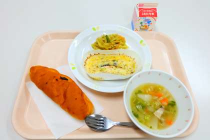 5月17日(月)の給食 公開日 2021/05/17 更新日 2021/05/17 給食 《今日の献立》 ・ぶどうパン ・鮭のマヨネーズ焼き ・野菜のカレーソテー ・かぶとキャベツのスープ ・牛乳 いいね(0) 給食