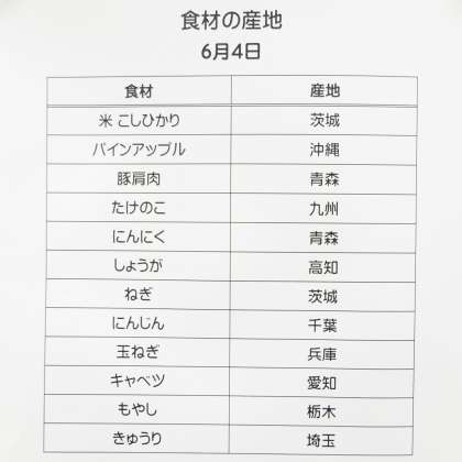 《今日の献立》 ・回鍋肉丼 ・糸寒天サラダ ・パインアップル ・牛乳
