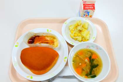 6月9日(水)の給食 公開日 2021/06/09 更新日 2021/06/09 給食 《今日の献立》 ・てりやきチキンバーガー ・チーズコーンポテト ・レンズ豆の田舎風スープ ・牛乳 いいね(0) 給食