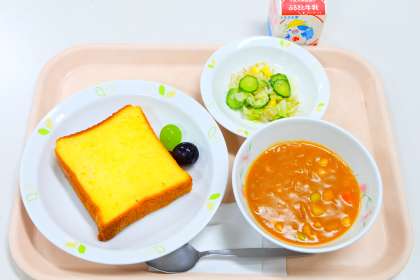 10月12日(火)の給食 公開日 2021/10/12 更新日 2021/10/12 給食 《今日の献立》 ・オレンジ風味のフレンチトースト ・ビーンズシチュー ・コーン入りフレンチサラダ ・ぶどう食べ比べ (巨峰・ロザリオビアンコ) ・牛乳 いいね(0) 給食
