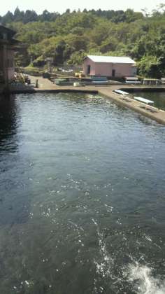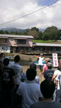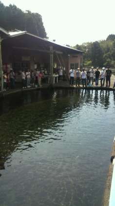 養鱒場に着きました。これからお昼に食べる鱒を釣ります。ガンバロ〜!
