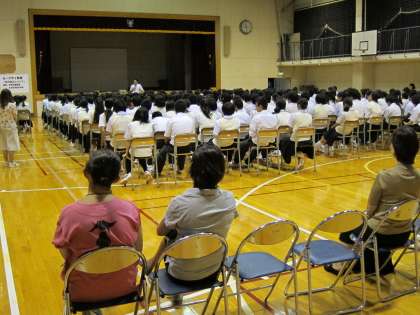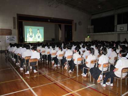 窃盗(万引き・自転車盗)やインターネット犯罪について、DVDを鑑賞し、そのあと、警察の方から詳しい説明がありました。身近に潜む犯罪、お互い、気を付けましょう。