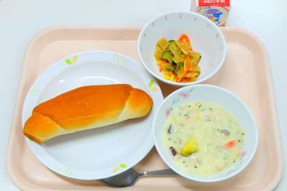 11月10日(水)の給食 公開日 2021/11/10 更新日 2021/11/10 給食 《今日の献立》 ・クリームチーズ &いちごジャムサンド ・白菜とさつまいものシチュー ・大根とコーンのごまドレサラダ ・牛乳 いいね(0) 給食