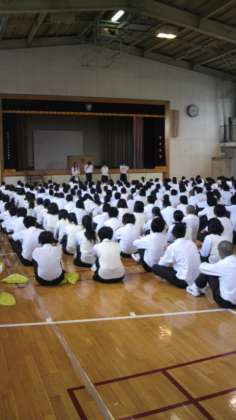 前期、最後の生徒会朝礼が行われました。前期の役員会、委員会の皆さん、たいへんお疲れさまでした。ありがとうございました。