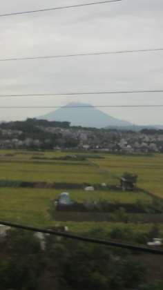 車窓からの富士山です。頭がちょっと白いのは、雪でしょうか?