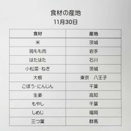 11月30日(火)の給食