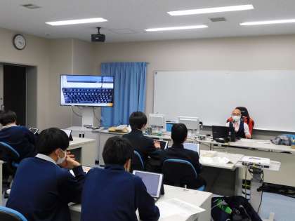 21日(火)放課後、「スクール・バディ」の主催による「タイピング講座」を実施しました。スクール・バディは、学年を超えて生徒のつながりを深め、いじめをなくす活動を進めている有志の生徒達です。この日は講師として本校学校事務の佐々木健さんをお招きし、タイピングの基礎である「ホーム・ポジション」をはじめ、作業効率を上げるための正しい姿勢や、技術習得のコツなどを教わりました。生徒は持参した個人用タブレットで実際にホーム・ポジションを確かめ、一つ一つ丁寧に文字を打っていました。最後に、タイピングゲームで制限時間内の成績を競う競技を行い、成績優秀者にはバディから、特製の表彰状が授与されました。