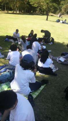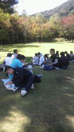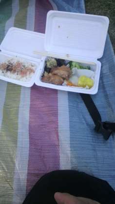 お弁当タイムです。自然の中で食べるごはんはとても美味しいですね〜!