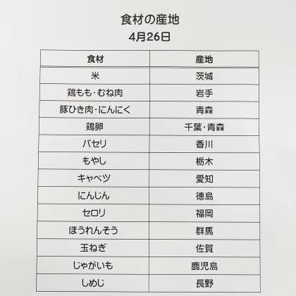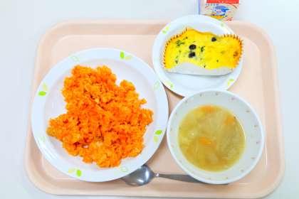 《今日の献立》 ・チキンライス ・チーズオムレツ ・ABCスープ ・牛乳