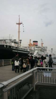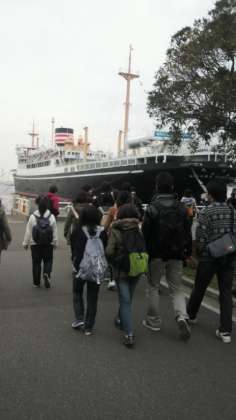 氷川丸に到着しました。これから見学します。みんなが想像していたよりも、ずいぶん大きいみたいです。カモメもたくさんとまっています。