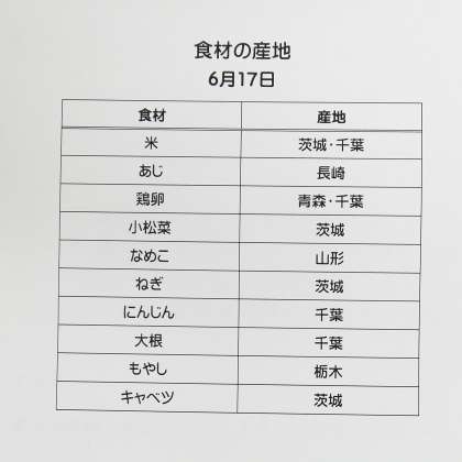 《今日の献立》 ・ごはん ・あじフライ ・野菜のからしあえ ・豆腐となめこのみそ汁 ・牛乳