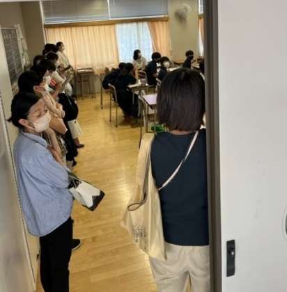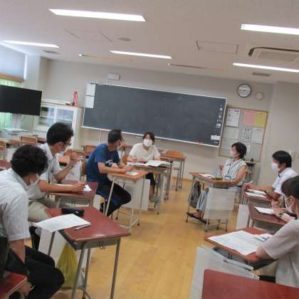 6月29日 第1回学び舎の日(合同研修会)が行われ、学び舎の若林小学校、山崎小学校、城山小学校の先生方や保育園の園長先生が授業参観に来られました。授業参観後は各教科ごとに小中の先生方が、指導内容や方法などについて話し合いを行いました。