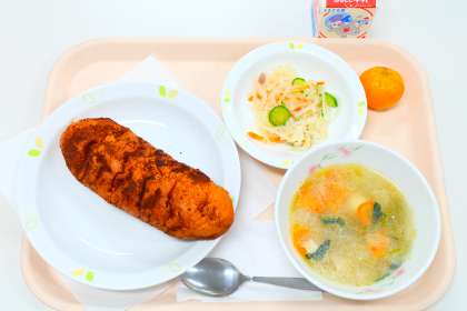 9月5日(月)の給食 公開日 2022/09/06 更新日 2022/09/06 給食 《今日の献立》 ・ココア揚げパン ・春雨の豆乳スープ ・大根とツナのサラダ ・冷凍みかん ・牛乳 いいね(0) 給食