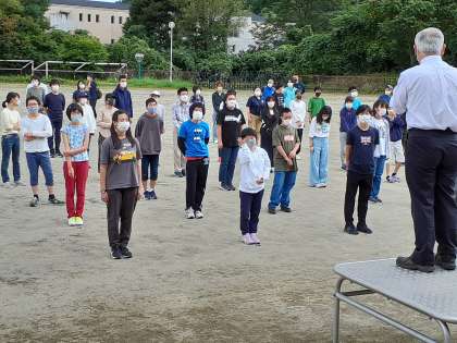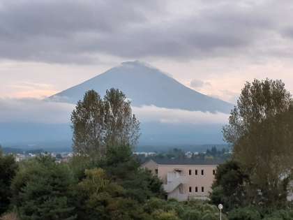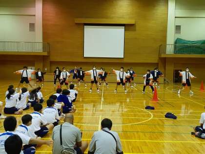 学園に着き、4校合同の生活が始まりました。夕方には富士の頂が顔を出しました。夜はレクリエーションです。ずっと練習してきたソーラン節を心を合わせて披露しました。